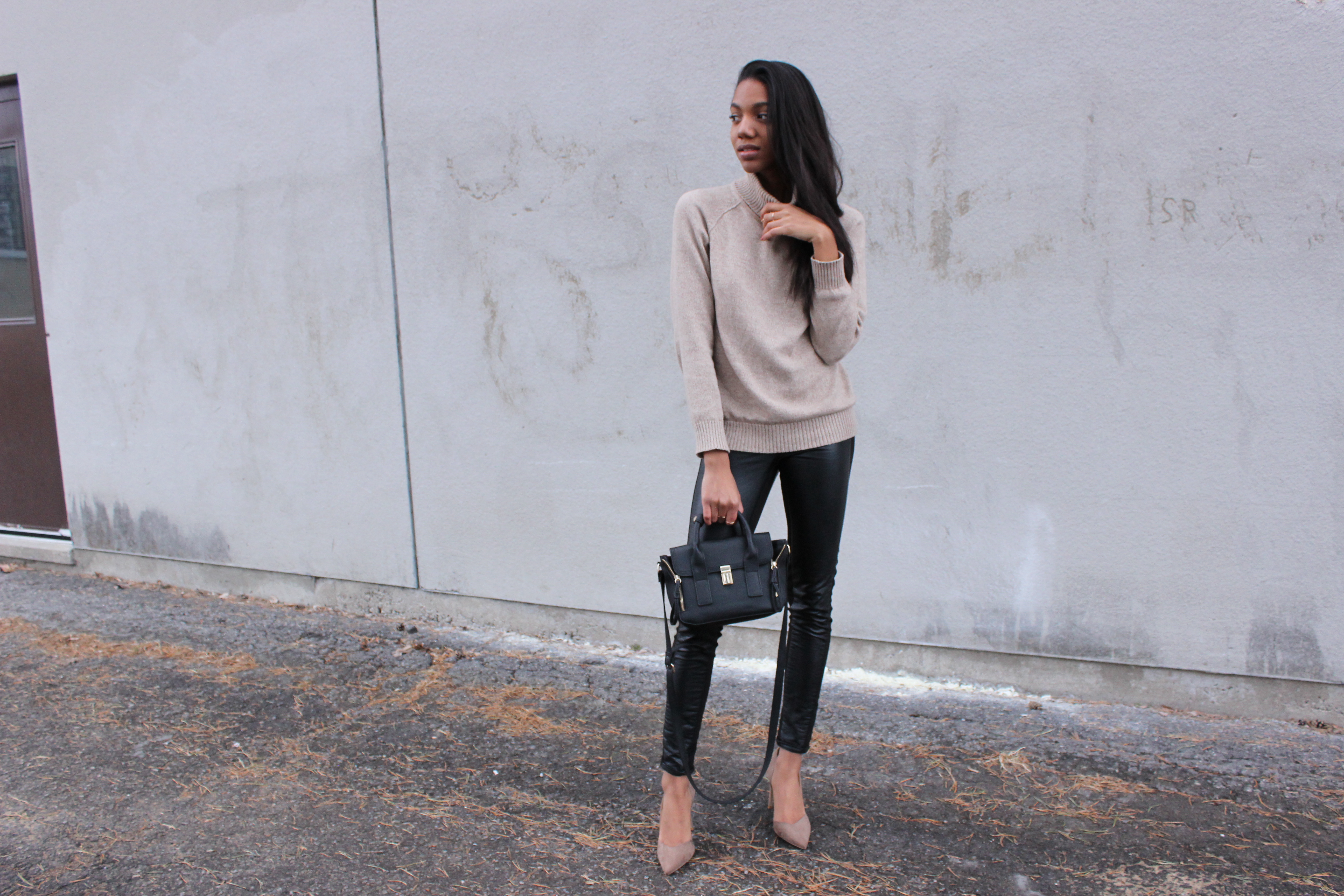 Jacket: Forever 21 | Turtle Neck: Macy’s | Pants: H&M | Shoes: Sirens | Bag: Forever 21